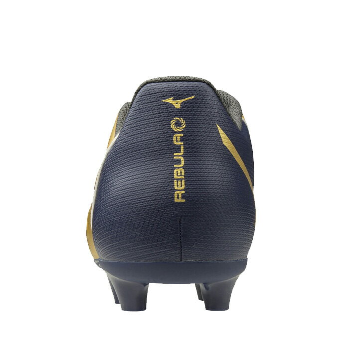 サッカースパイクメーカー:ミズノ品名:レビュラ 3 セレクト プラス / REBULA 3 SELECT +品番:P1GA206514●アッパー 人工皮革●アウトソール 合成底●カラー ゴールド×ネイビー●その他仕様・天然芝/土/人工芝のグラウンド用・ゼログライドライトカップインソール(取り外し可)質量:約235g(27.0cm片方)足幅:3E相当の方向け2020年2月発売アッパー構造を進化させ、CTフレームも搭載させた、ワイドフィットモデル。